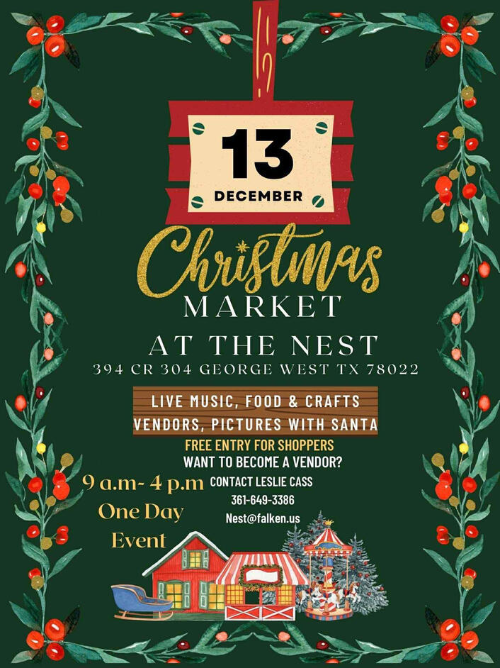 13th @ 11 AM - 2 PM | Christmas Market at The Nest | 394 CR 304, George West