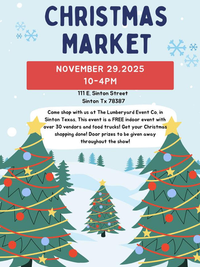 29th @ 10 AM - 4 PM | Christmas at the Lumberyard | 111 E. Sinton St, Sinton
